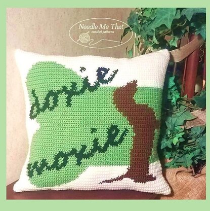 Pattern includes instruction and tips for how to do intarsia crochet, specific instructions for THIS particular pattern and a colored graph. “I Love This Yarn” brand yarn was used for this pattern, however any medium weight (#4) worsted weight yarn with comparable colors can be used. Front of the pillow has the dachshund art, the back is plain “ivory”.