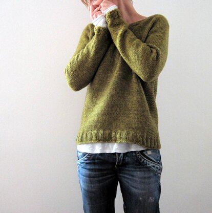 This sweater is worked seamlessly from the top down. The back of this sweater is worked in garter st, the front and the sleeves are worked in St st. while short-rows are used to shape the neck. The garter st part of the back flows slowly towards the front by working decreases/ increases. Some final short-rows are worked right before the bottom ribbing to create a slightly longer back and equalize the difference in length between garter st and St st. Neck finishing is worked last. You choose between option 1 (scoop neck) or option 2 (cowl neck).