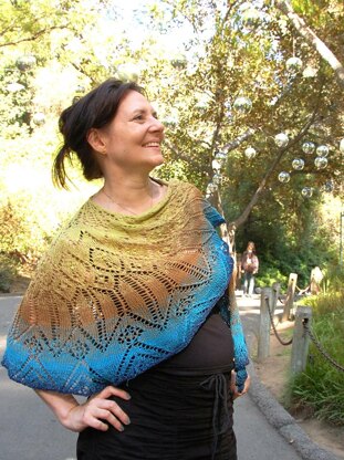 This is a pattern for a crescent/half-circle shaped shawl worked with lace and beads (optional; approx. 400 sized 6/0 or to fit yarn). It has a radiating motif bursting into lacy trim.