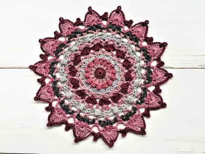 This mandala is an other one of the many mandala’s I am making. I want to design a wallhanging, constisting of all kind of mandalas/doilies in these colors.