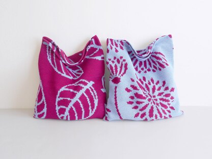 Get two bag designs in one pattern. Same construction but two different nature drawings for you to practice tapestry crochet. Make it with worsted weight yarn for a carry-all XL bag.