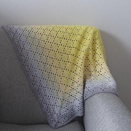 The Dainty Diamond Blanket is worked from the centre, creating gorgeous dainty diamonds. It is written in UK crochet terms and is ideal for a progressing beginner crocheter. You will need to be able to work double crochet and treble crochet stitches alongside slip stitches.