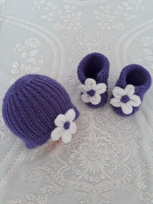 Daisy hat and bootee set
