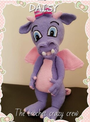 We would like to introduce to you 'Daisy' The Dragon, she is made up of basic stitches and rounds and stands at approximately 19" tall in DK, the pattern is written in US Terminology and consists of 26 pages, included in this pattern:-