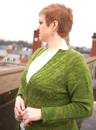 Damsel is a top-down, richly textured raglan sleeve cardigan with no finishing. It’s easily customized to exactly your right size – just try it on as you go, and stop increasing when it fits!