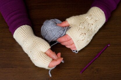 Comfortable, warm and snug fingerless mittens with a lovely stitch pattern and careful shaping worked in round and in spiral for seamless look.