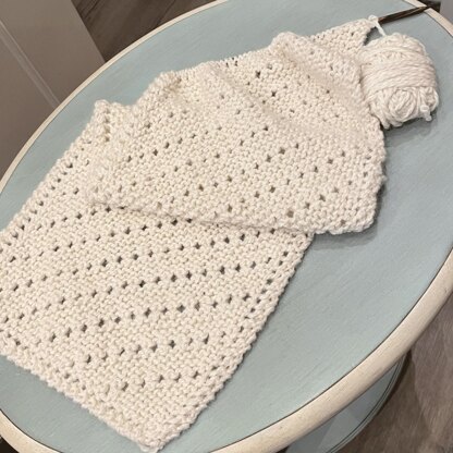 This is an easy to knit scarf in a pretty diagonal garter stitch pattern with rows of eyelets & a fancy edge. The pattern and the edge are created with very simple stitches & techniques. I've used the gorgeous Chaska Muhu chunky yarn with is 100% baby alpaca. The width and length of the scarf is easy to vary so that you can make a scarf to the dimensions that you'd like.