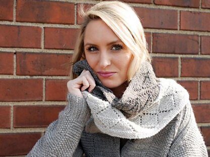 This quick, easy-to knit scarf or cowl can be worked in two yarn weights (fingering or DK/light worsted) and five sizes (petite scarf/tall scarf)[S cowl/M cowl/L cowl] for a cozy layer on chilly days. Natural yarn colors enhance the fabric texture while richly-dyed yarns will dramatize the openwork and bold geometry. This project makes a great beginner or travel knit.