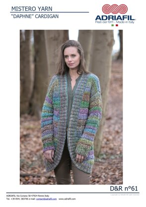 Daphne Cardigan in Adriafil Mistero - Downloadable PDF est un modèle de Tricot Intermédiaire par Adriafil, disponible au format PDF téléchargeable et comprend des instructions en Anglais. Super amusant à réaliser, ce modèle pourrait être votre prochaine œuvre d'art !