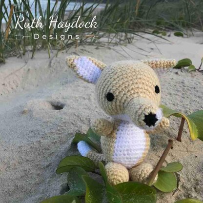 Darcy the Dingo is crocheted in the round in separate parts and then sewn together. Darcy uses up small amounts of yarn, making her a perfect stash buster.