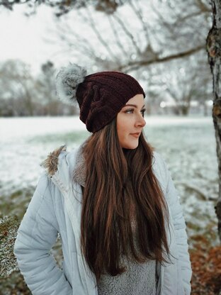 This little beanie is a surprisingly quick knit despite all of the ribbing. It is a meditative knit with an intricate yet simple cable. You will need a cable needle to work the cable pattern because you are crossing a lot of stitches at once. The hat offers the option to make it either fitted or a little slouchy. Top it with a massive pom pom for a super cute look.