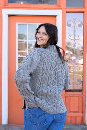 Wake up and smell the coffee—this yummy cable knitter’s delight is a must-have for cold weather! Available in twelve sizes (XXS to L) and [1X through 7X] and knit from hem to neck in the round with raglan shaping, the boxy shape and split hem deliver all-day comfort and style. Cable elements add strong vertical interest at the center of the body and sleeves, with garter stitch panels accenting the side seams and raglan lines. With just a short bit of seaming at the underarms, this pullover is a speedy, relaxing project for experienced knitters as well as a great choice for adventurous intermediate knitters.