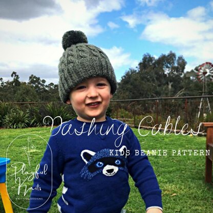 This is a classic cable beanie with double rib band and optional pompom. It is very versatile and looks great with a range of colours and yarns to suit babies to pre-teens, and boys and girls alike. This beanie makes a fantastic present and will always impress!