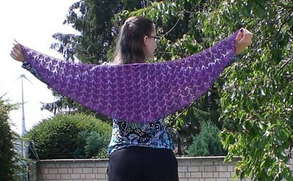 Dayna is a "heartshaped", or crescent, shawlette made out of 100g sock yarn. Looking like a bird spreading his wings, Dayna is the perfect little accessory for your neck in transitional weather: you can wear it around your shoulders to show off the stitch pattern, or you can wrap it around your neck like a scarf if the weather gets cooler.