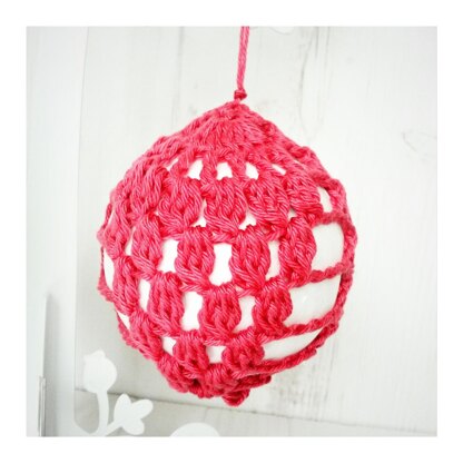 Requirements: 4mm crochet hook, DK yarn, darning needle, 60mm/80mm polystyrene ball, ricrac braid, beads, bells (optional)