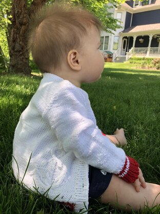A gender neutral nautical cardigan worked from the bottom up, with top down sleeves to keep finishing to a minimum. The cable anchor and chain, along with a bit of contrast color at the hem and cuff will keep your little sailor looking sharp and ready for adventure. The cardigan was designed to allow for about 2" of positive ease for layering.