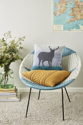 Inspired by the beautiful deer who roam freely in Nottingham's Wollaton Park, this Felted Tweed cushion features an intarsia deer silhouette against a background of simple fair-isle.