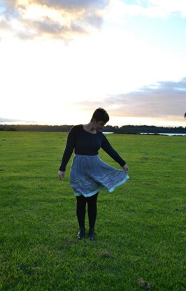 This 8 panel skirt comes with the options for a demure half circle or a three quarter circle for maximum twirl factor. Knit seamlessly in the round, this skirt includes full instructions to complete an enclosed elastic waistband which ensures this skirt stays put no matter what and also makes sure the fit is perfect. A simple but pretty lace detail shapes the skirt panels and hides the increases in the pattern. This skirt is designed to work well when striping different coloured yarn and is great for stash busting!