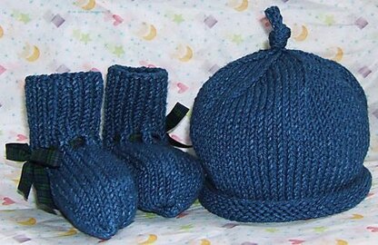 Rowan Denim is a cool yarn! It shrinks after washing and fades just like blue jeans. The pattern is sized to take this into account. You will knit the set and then wash them to get them to the correct size. These are so cute for a baby girl or a baby boy - easy to knit, too.