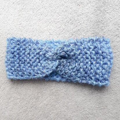 A garter stitch headband with a twist to keep you warm.