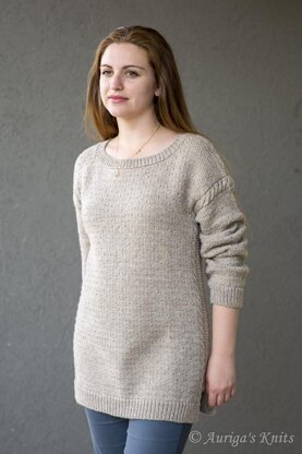 The pullover is knitted in round, bottom up and almost seamless (seamed only on shoulders). The sleeves are picked up and knitted top down in round.* The neckline is picked up and knitted in round as well.*