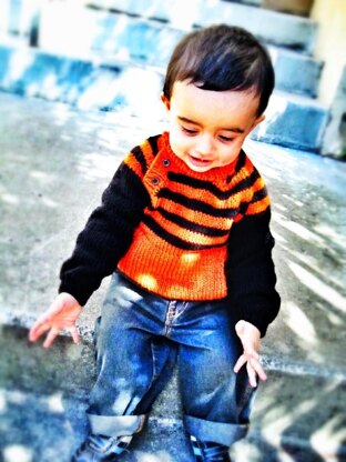 ‘Dhari’ is Hindi for ‘Stripe’ and is named after my orignal idea for this design which was published in YarnForward Magazine (UK). The pattern was written to be knit bottom-up. Stripey was born out of necessity more than anything else. My son was growing out of his clothes too fast and it was pretty cold. So I took out two shades of yarn from my stash and whipped up this in a day. I wrote in enough ease and knit extra length, so that he could use the sweater for a couple of more seasons.