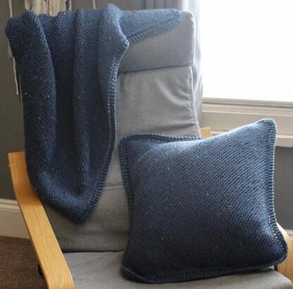 An Aran cushion cover designed to complement the Diagonal Comfort Blanket.