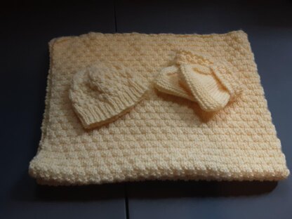 Diamond Baby Set with Blanket, Beanie and Booties Knitting Pattern