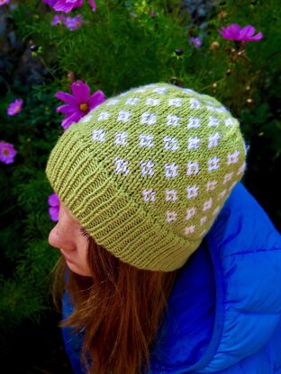 Diamond Hat by LizzyLou is a great pattern for learning to knit stranded style, in the round with 2 colours. Choose between a double rib or a long folded rib.