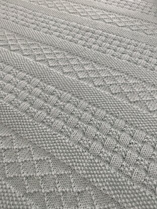 This pattern can be adjusted in width by adding or reducing the amount of stitches, as indicated in the pattern. The length of the baby blanket can be adjusted by repeating the pattern stitch rows as set out in the pattern until you reach your desired length.