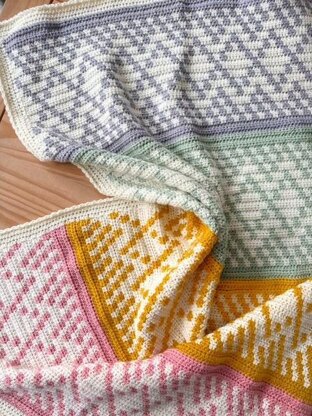 Create a beautiful blanket using just a half double crochet! Simple colour changes work up rhythmically to create a mosaic diamond design using tapestry crochet.