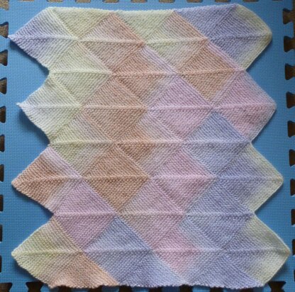 This blanket is worked in 7 panels of garter stitch motifs, which are joined together as you work. It can easily be made larger by simply adding more panels and adding additional connecting motifs in each panel.