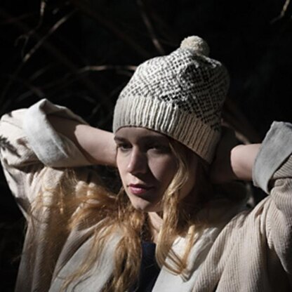 Inspired by rattlesnakes and wintery desert vistas! Diamond patterns, found everywhere in nature, are sprinkled over your hat with two color stranded knitting for beauty and protection from the elements. Knit in the round from ribbed cuff to crown and topped with a pompom if you desire.