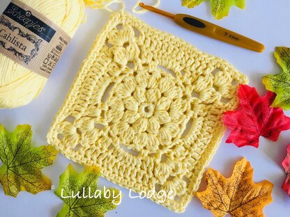 I made my square with Scheepjes Cahlista Aran in Lemonade, with a 4.5mm hook and my finished square measured approximately 6 inches. You can use any yarn weight you like just use the hook size recommended on the yarn ball band.
