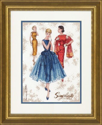 Cette pièce de la Gold Collection de Dimensions célèbre les 90 ans des patrons Simplicity. Le kit contient du fil de coton trié, du tissu Aida blanc 14 count, une aiguille et des instructions.