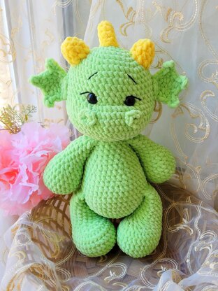 Crochet pattern toy Baby Green Dragon. The pattern is available in English.
