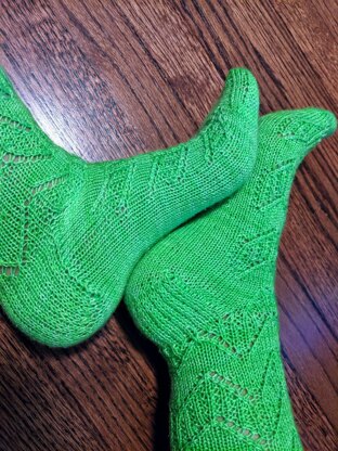 Achieve a stunning graphic effect using only basic increases, decreases, knits, and purls with this addictive sock pattern. These socks in three sizes are knit from the cuff down and feature a heel flap and hidden gusset that merges seamlessly with the instep pattern.
