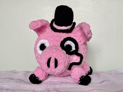 Pattern is beginner friendly, and uses UK terms. Horace is approximately 15cm in diameter. Pictured version made using Marriner Get Cosy Blanket yarn, which is unfortunately no longer available. Substitute with any super chunky chenille-type yarn, or see yarnsub for similar yarn suggestions. Hat, monocle, eyes, & trotters are made in DK.