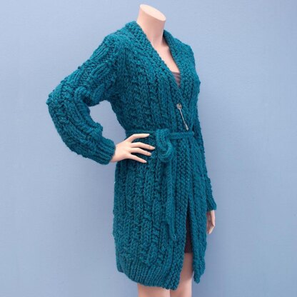 This warm and comfortable chunky coat/cardigan is ideal to curl up on your couch or to take a nice autumn walk in to the forrest.