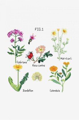 Téléchargez votre patron de point de croix gratuit et plongez vos aiguilles dans cette étude botanique magnifiquement complexe. Le design présente cinq types de plantes à fleurs médicinales, avec les noms latins à côté, et sera l'ajout parfait à des torchons, sacs fourre-tout, linge de table et plus encore.