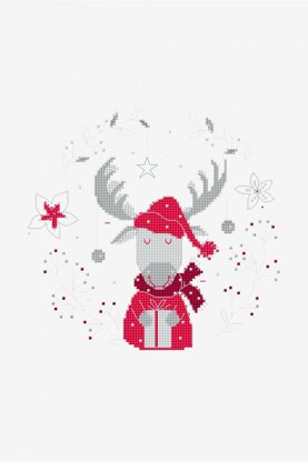 Illuminez votre maison pour les fêtes avec ce motif de point de croix gratuit ! Ce design amusant présente un caribou porteur de cadeaux, bien emmitouflé dans un chapeau et une écharpe, et entouré de motifs festifs.