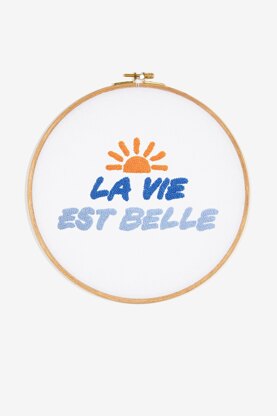 Lift your spirits with this ‘la vie est belle’ embroidery pattern which spells out ‘life is beautiful’ in French. To be reminded of these positive words wherever you go, why not stitch onto your favourite t-shirt or tote bag? It will also make a lovely gift for a friend to spread positivity. Our patterns and quality supplies make it easy for you to complete your project. Colourfast and fade resistant DMC threads keep stitches looking vibrant for generations to come.