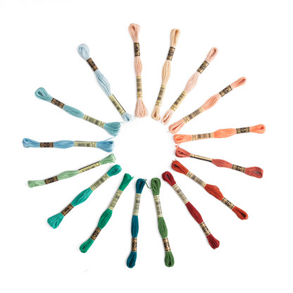 Hues to have you dreaming of summers spent abroad! From sea to shore, find terracotta shades of DMC Stranded Cotton as well as blues and greens reminiscent of coral reefs, all packaged in a handy colour pack. Includes shades: 3808, 519, 775, 598, 950, 739, 3774, 564, 3850, 958, 987, 754, 3777, 3341, 356, 920