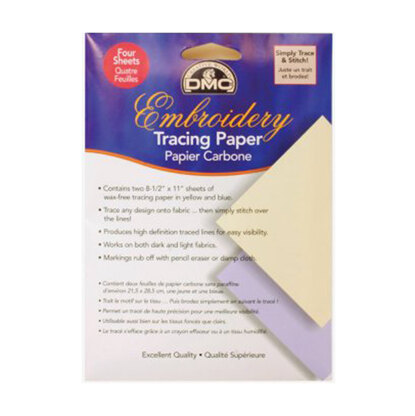 The Embroidery Transfer Paper used to trace any design onto fabric, then simply stitch over the traced lines. Markings rub off with soft pencil eraser or damp cloth.\nIncludes four 8in x 11in sheets of wax-free tracing paper: two yellow and two blue. Both colours produces high definition traced lines for easy visibility.