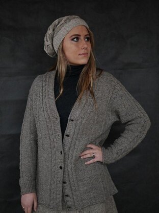 Dock and Cabin This lightweight, drop shoulder cardigan in three sizes (S-M/L-2X/3X-5X) with an oversized fit is so soft, comfy, and versatile that it can be worn indoors or out, alone over loungewear or layered over jeans and boots. The fit works well for women and men alike; an allover knit/purl texture and cabled details lend visual substance to an otherwise airy fabric with flattering drape. Constructed from flat knit, portable pieces in easy to learn patterns, this addictive knit is an engaging deep winter or summer vacation project. Substituting yarn and/or needles may result in an overall variation in size, drape, and yardage requirement.