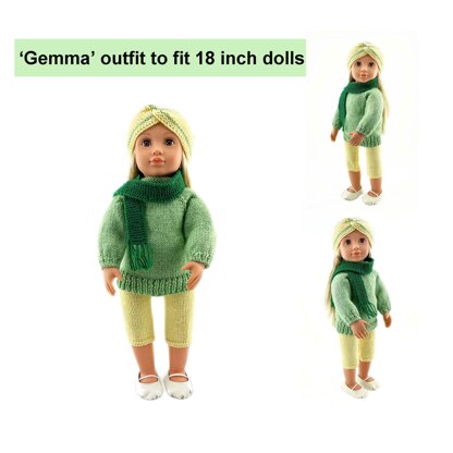 Dolls Outfit Knitting Pattern To Fit 18 inch Dolls Such As American Girl, Our Generation, Maplelea Girl And Others With The Same Proportions 18" 'Gemma' outfit which includes crop pants, sweater, twisted headband and scarf. The patterns are knit flat and seamed and are very easy to follow with clear instructions and photos. All yarn amounts and step by step instructions are included in the patterns. ** SKILLS NEEDED TO COMPLETE ** HOW TO: Cast on Knit Purl Increase Decrease Cast off