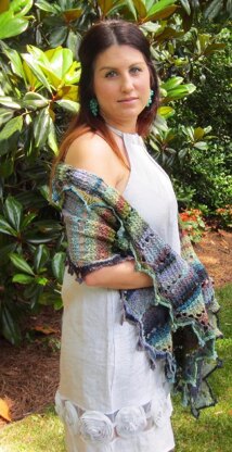 Donau Wrap is a light wrap 82 inches (208 cm) in length by 21 inches (53cm) at the widest point. Donau is Danube in German, and I named it this because the Noro colorway reminded me of the river I saw in both Germany and Serbia. Both sides of the wrap come to a point, so that it is not completely rectangular in shape. Although I have provided a gauge above, gauge is not really that important for this project. The edging is a long repeat over several stitches, and each point ends with picots. Donau wrap is a nice accessory for evening or daytime and can be worn from spring through the fall. The pattern pdf includes up-close photos of the edging and the body stitches.