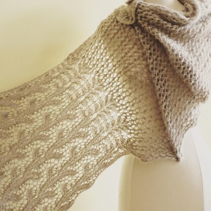 Instructions to adapt the pattern in length and width are given. Gauge is not crucial and the stole can be made with any yarn.