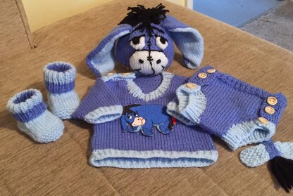 'Donkey' Jumper, Hat, nappy cover, Booties