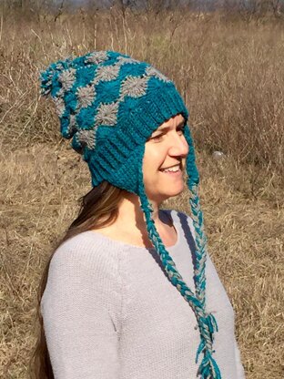 This hat is an original and unique pattern! A diamond stitch slouch style hat with ear flaps to keep those cheeks and ears warm!